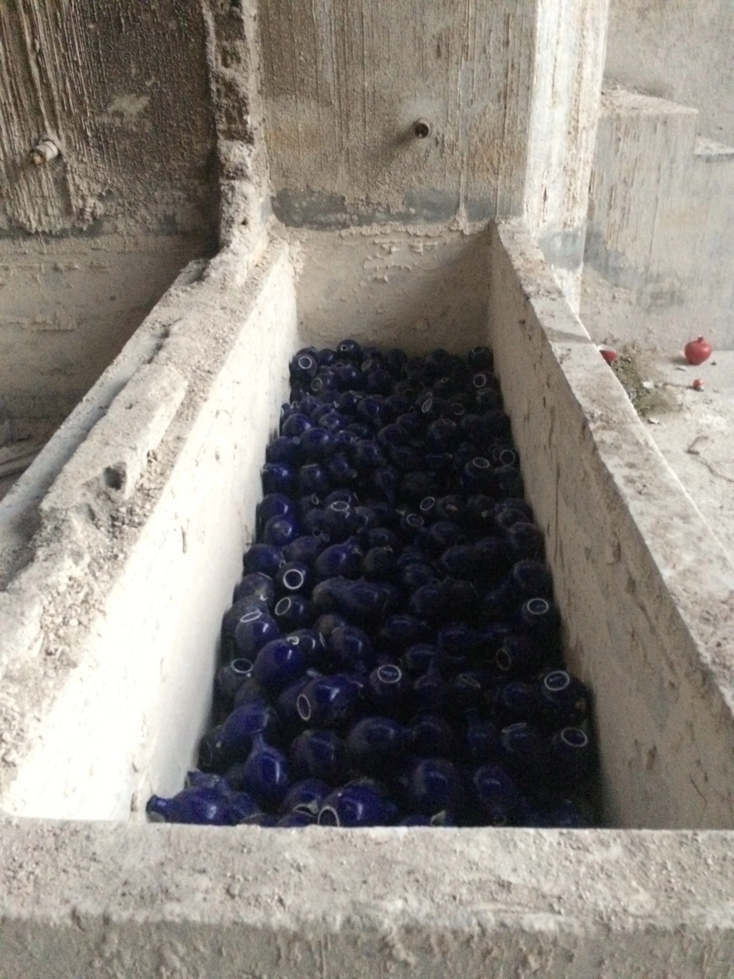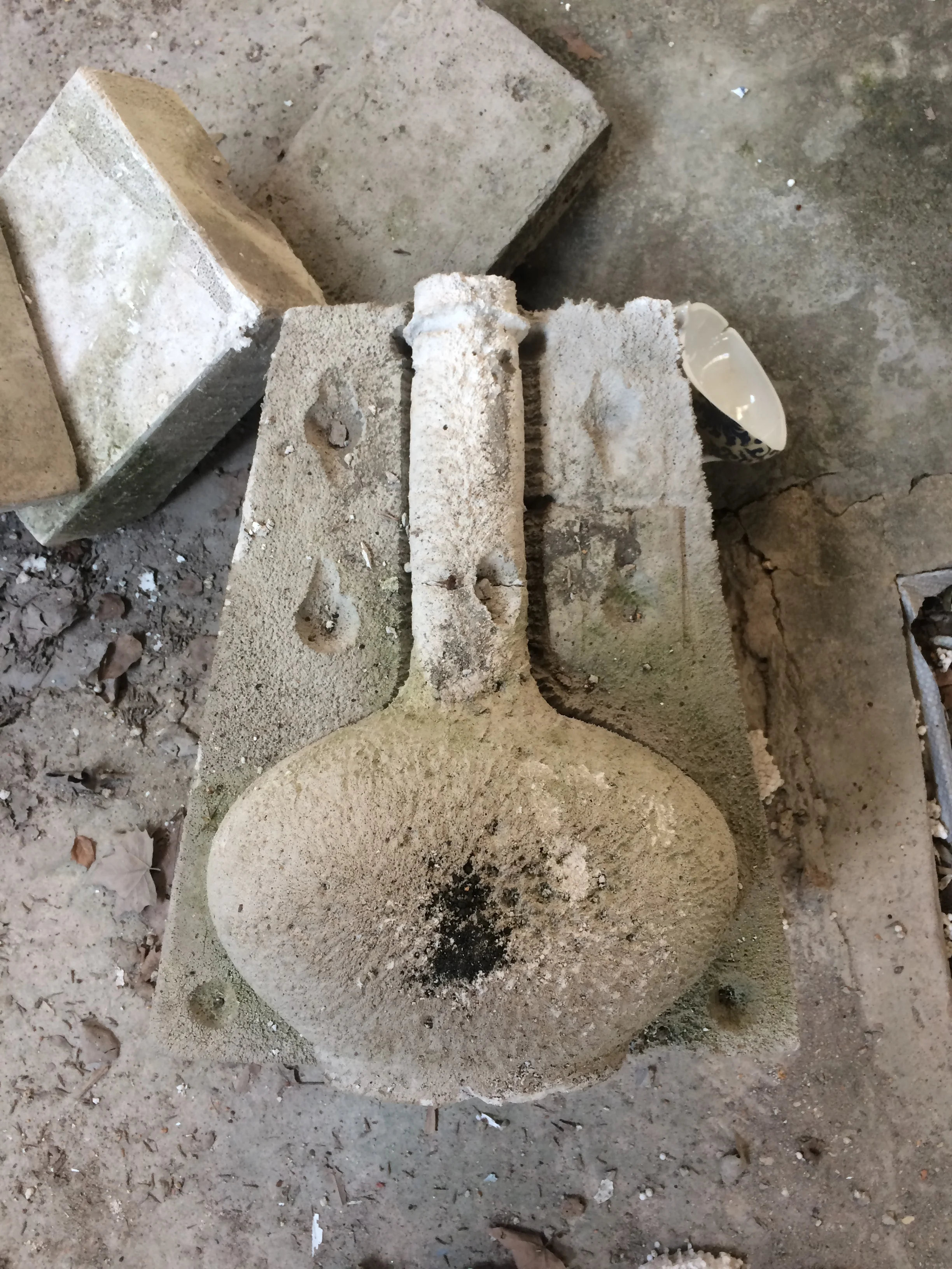 I was told about the Abandoned factory complex by the host of the JDZ Private Studio Residency, Nick Vest. It is located across the street from the front entrance to the sculpture factory. Like all abandoned spaces, it holds echoes of the past. I started visiting the abandoned factory complex daily to explore and get some quiet. One day I filled an old rinsing trough with blue bottles. that evening I started preparing ideas for the first installation.