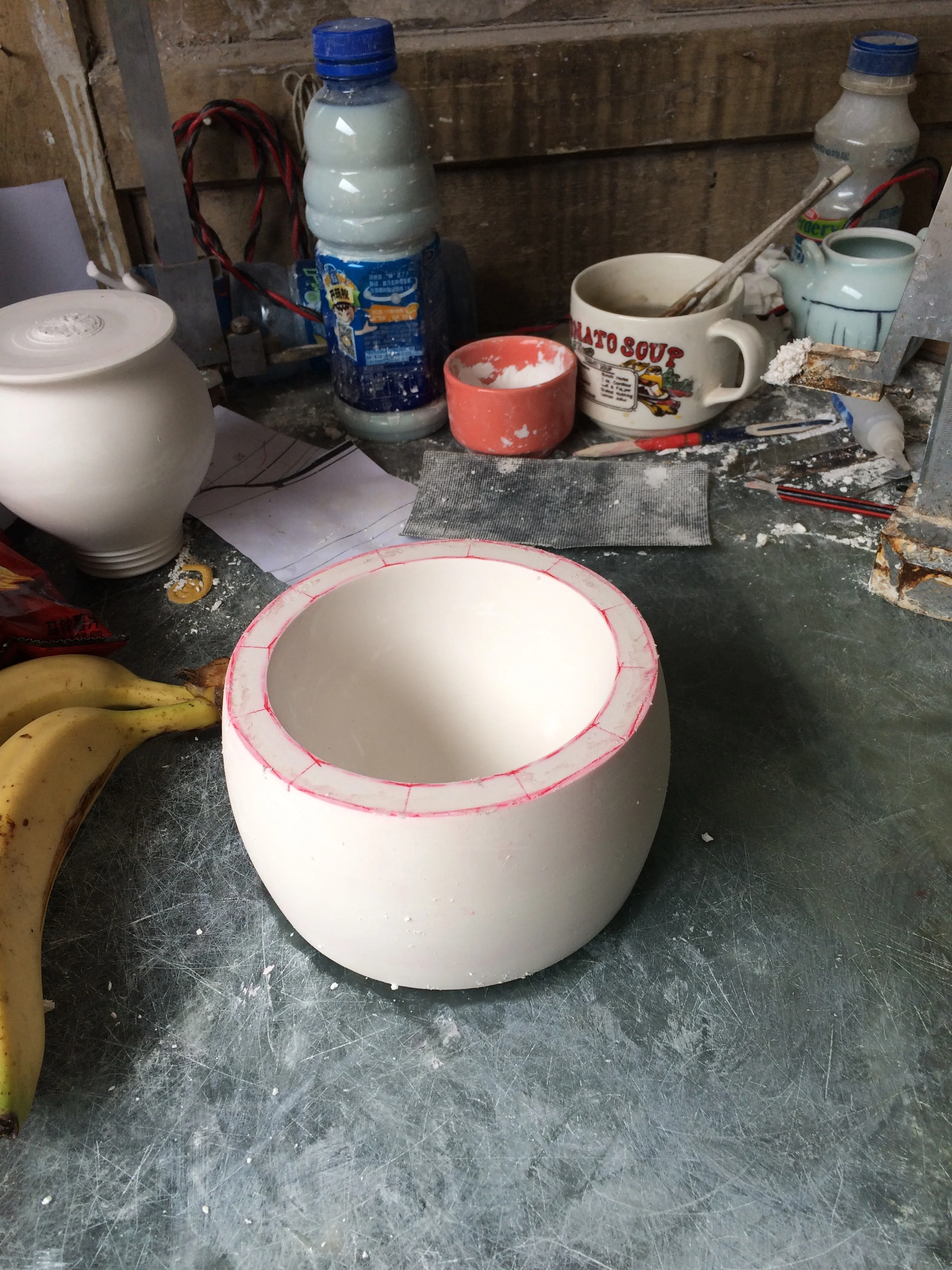 By the end of my six week project I had produced a small body of design procedures for hand thrown platters and planters, a series of plaster prototypes and molds for a body of slipcast homeware, and a small instalation series based in the abandoned factories throughout Jingdezhen.